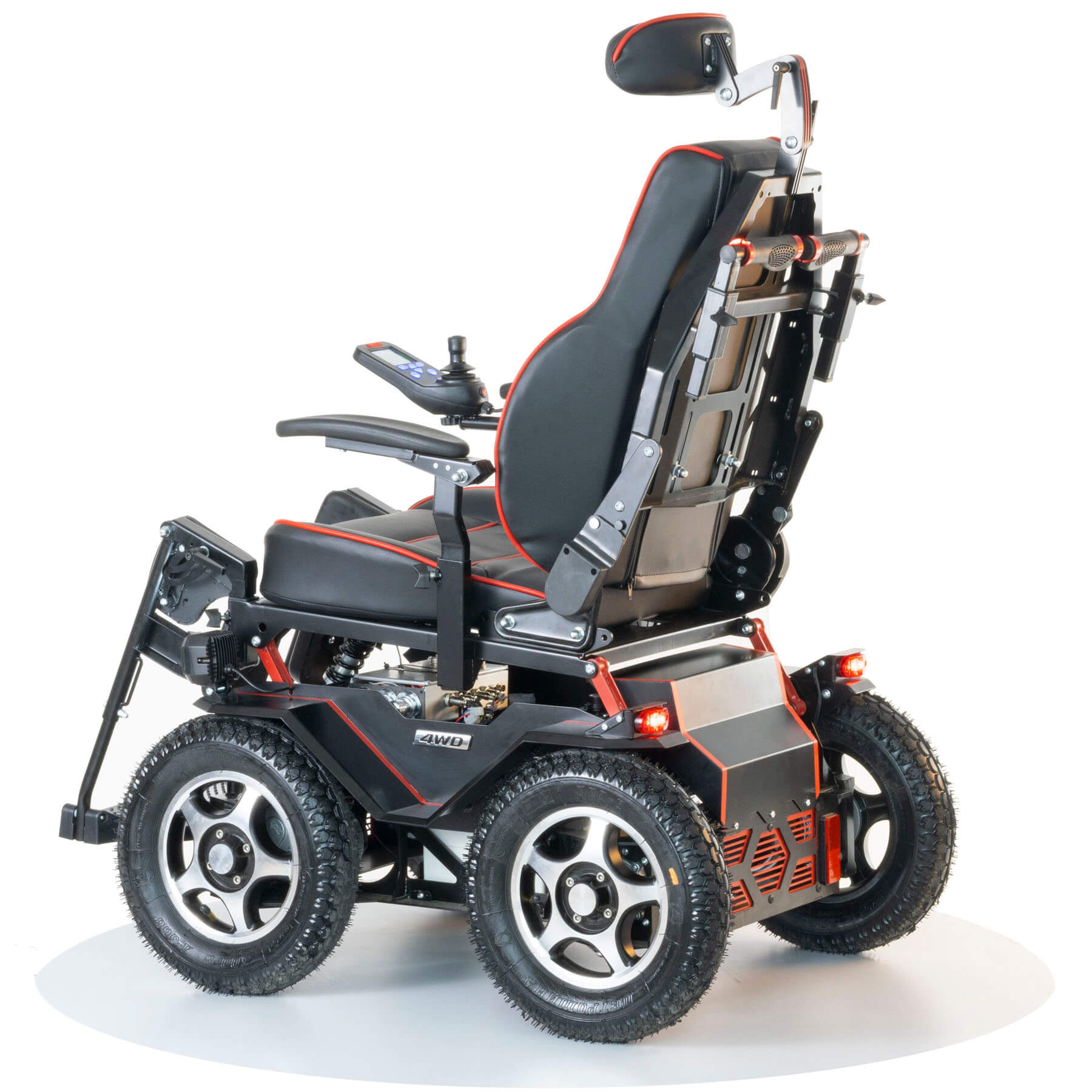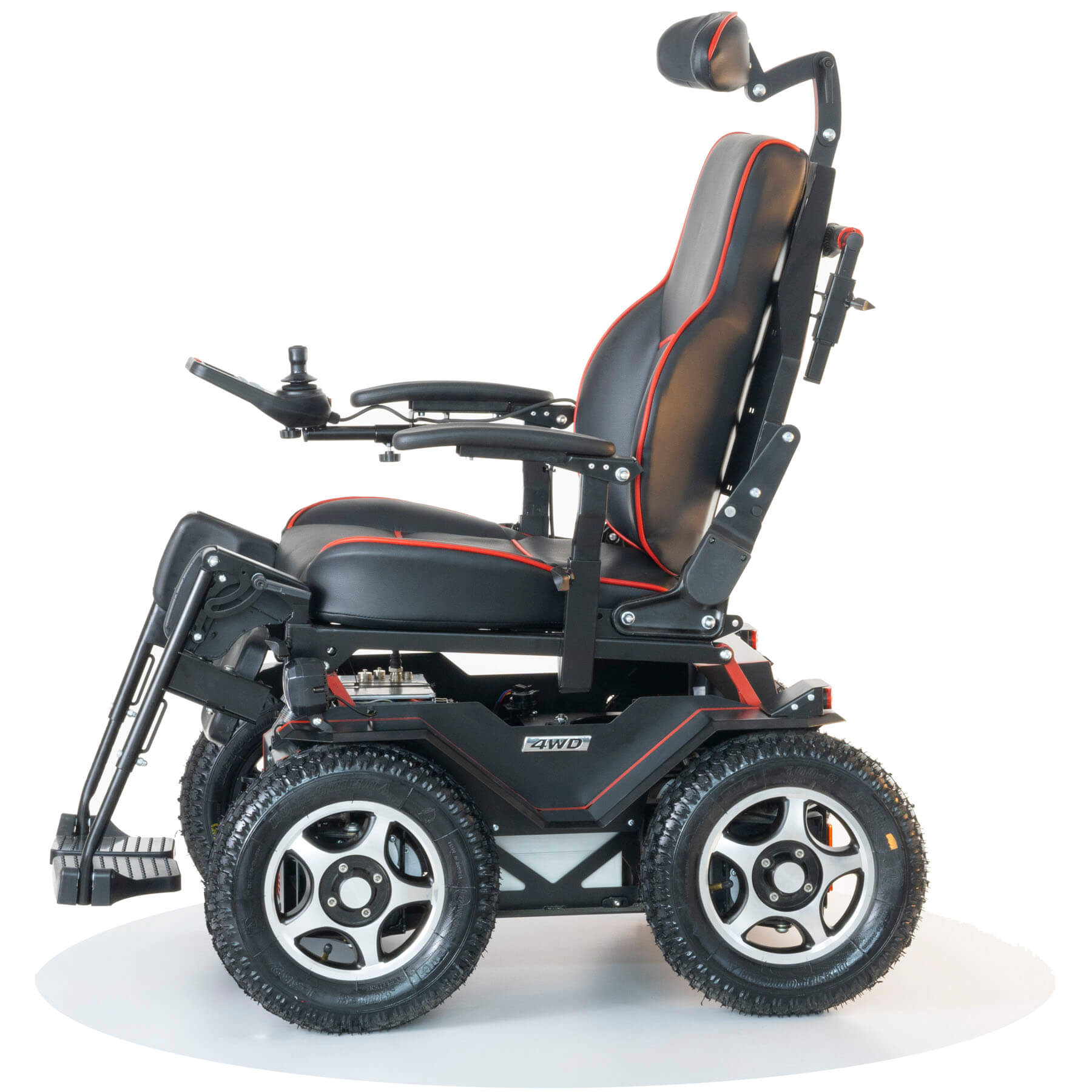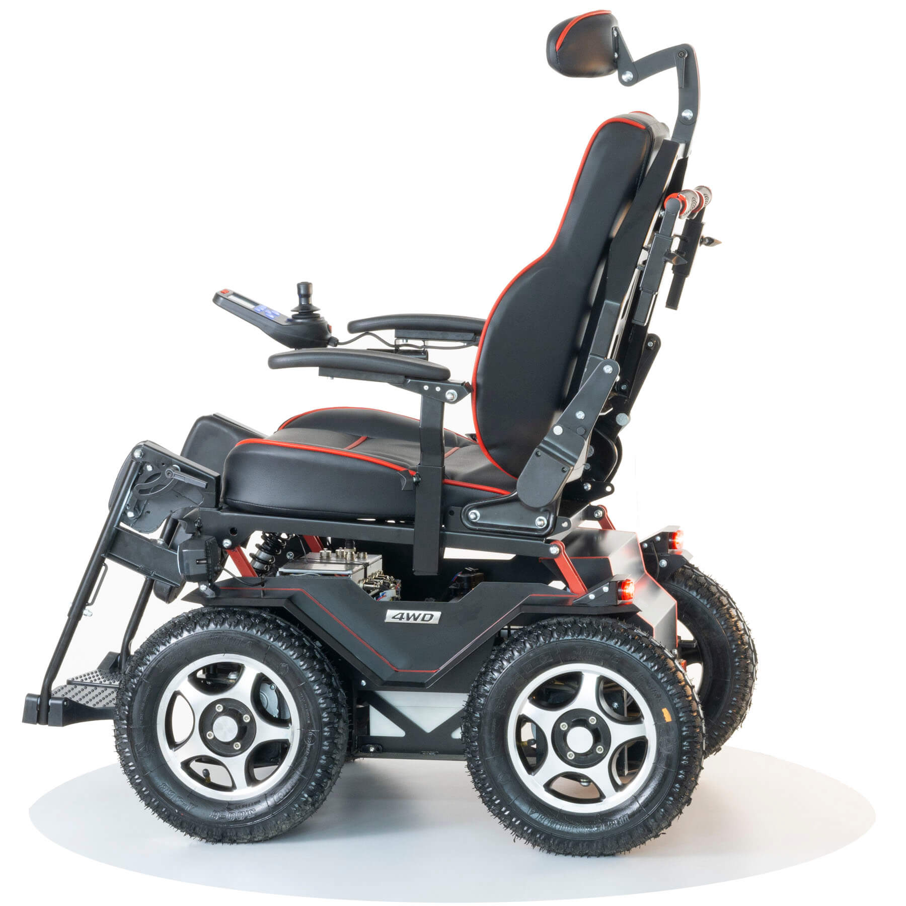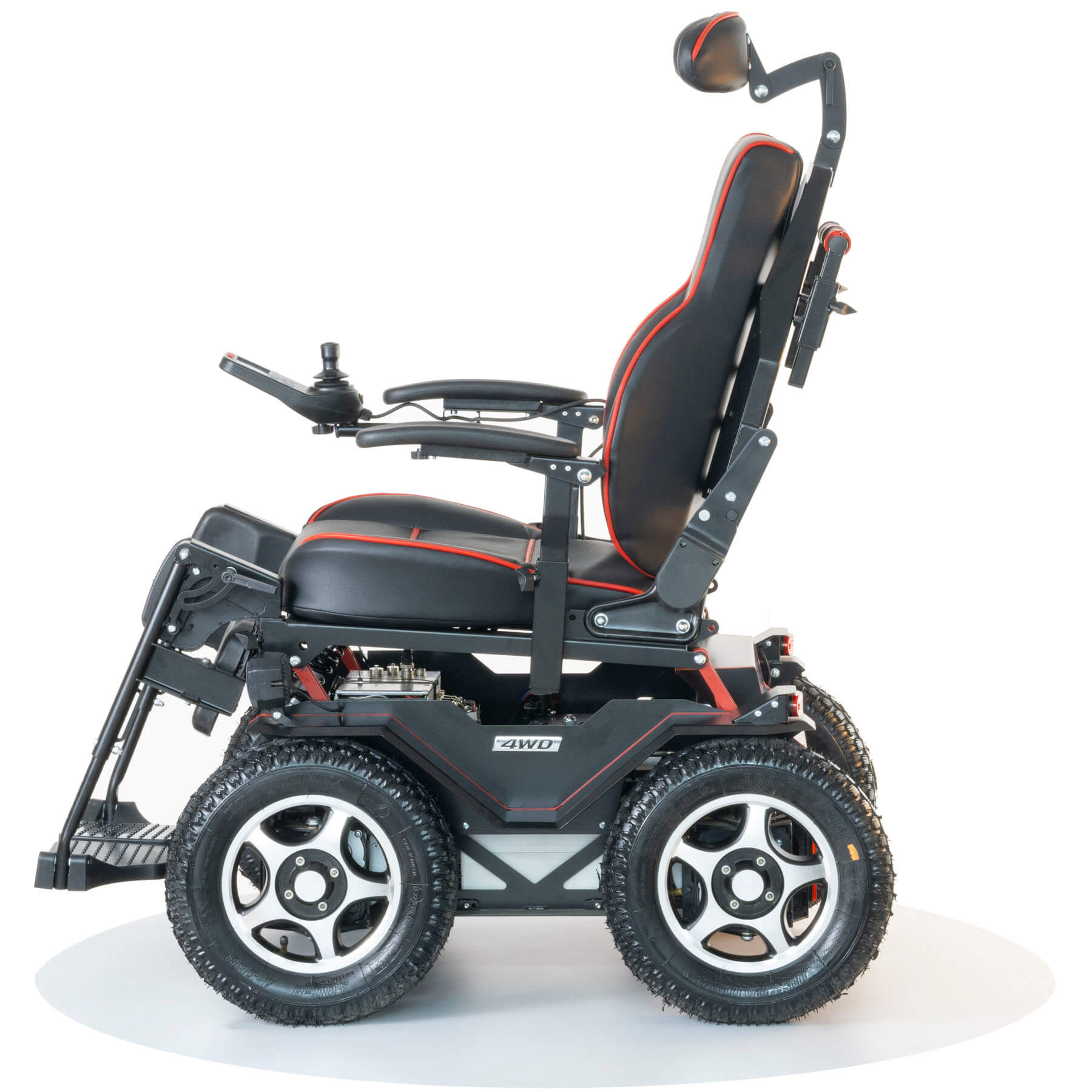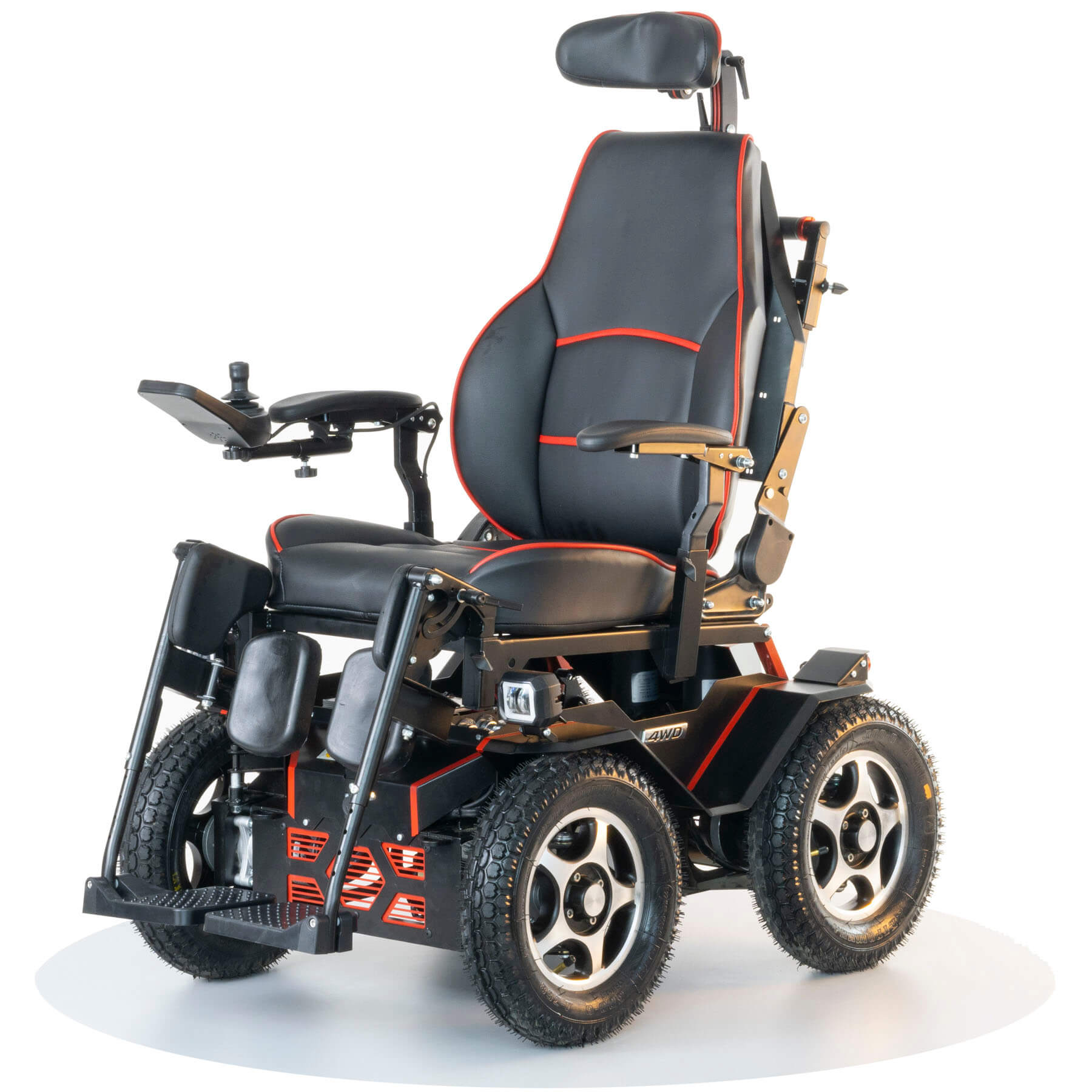 Der Elektrorollstuhl FER-Ultra 4WD ist die Version des FER-1300 ohne Treppensteigefunktion. Der Elektrorollstuhl FER-Ultra 4WD verfügt über 4 Antriebsräder. Allradantrieb ermöglicht das Wenden vor Ort auf engstem Raum. Der allradgetriebene Elektrorollstuhl hat eine extrem hohe Geländetauglichkeit und Manövrierfähigkeit. Die Vorteile dieses Modells lassen sich auch auf seine kompakten Abmessungen zurückführen. Das Fahrzeug ist 65 cm breit und nur 86 cm lang ohne Fußstützen und 105 cm mit Fußstützen. Das Gewicht des Geländefahrzeugs beträgt nur 98 kg!