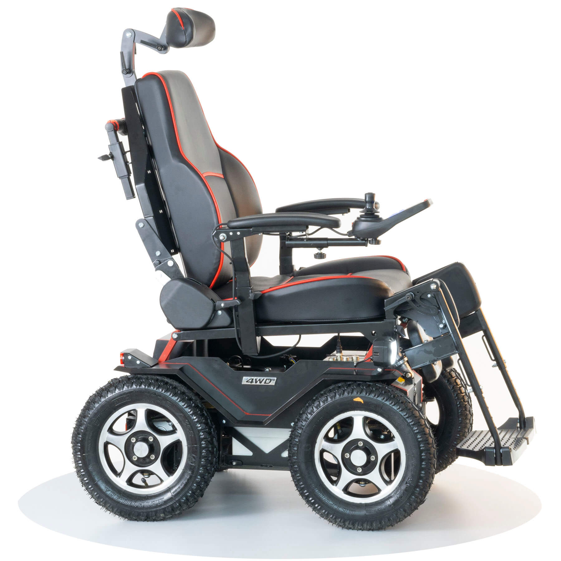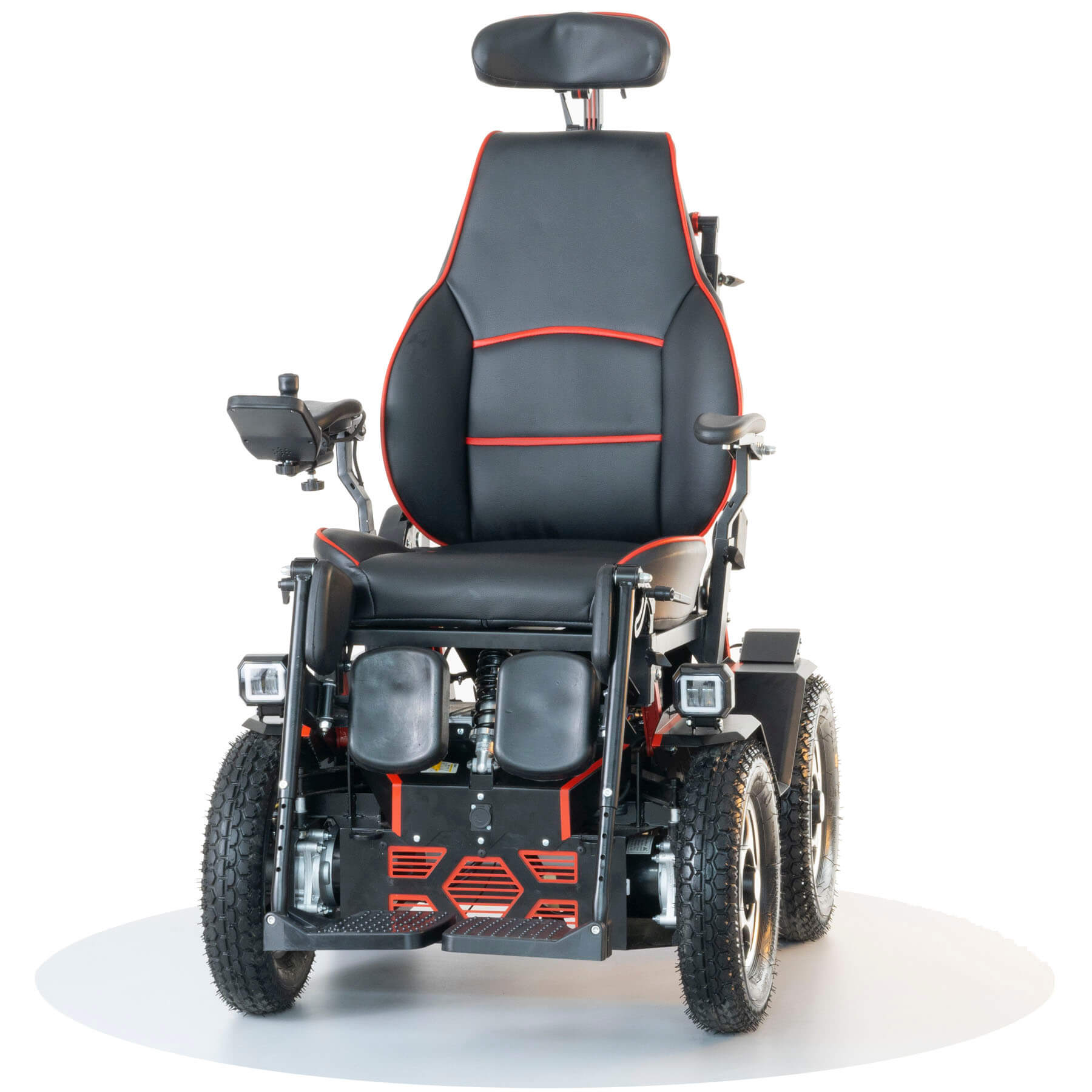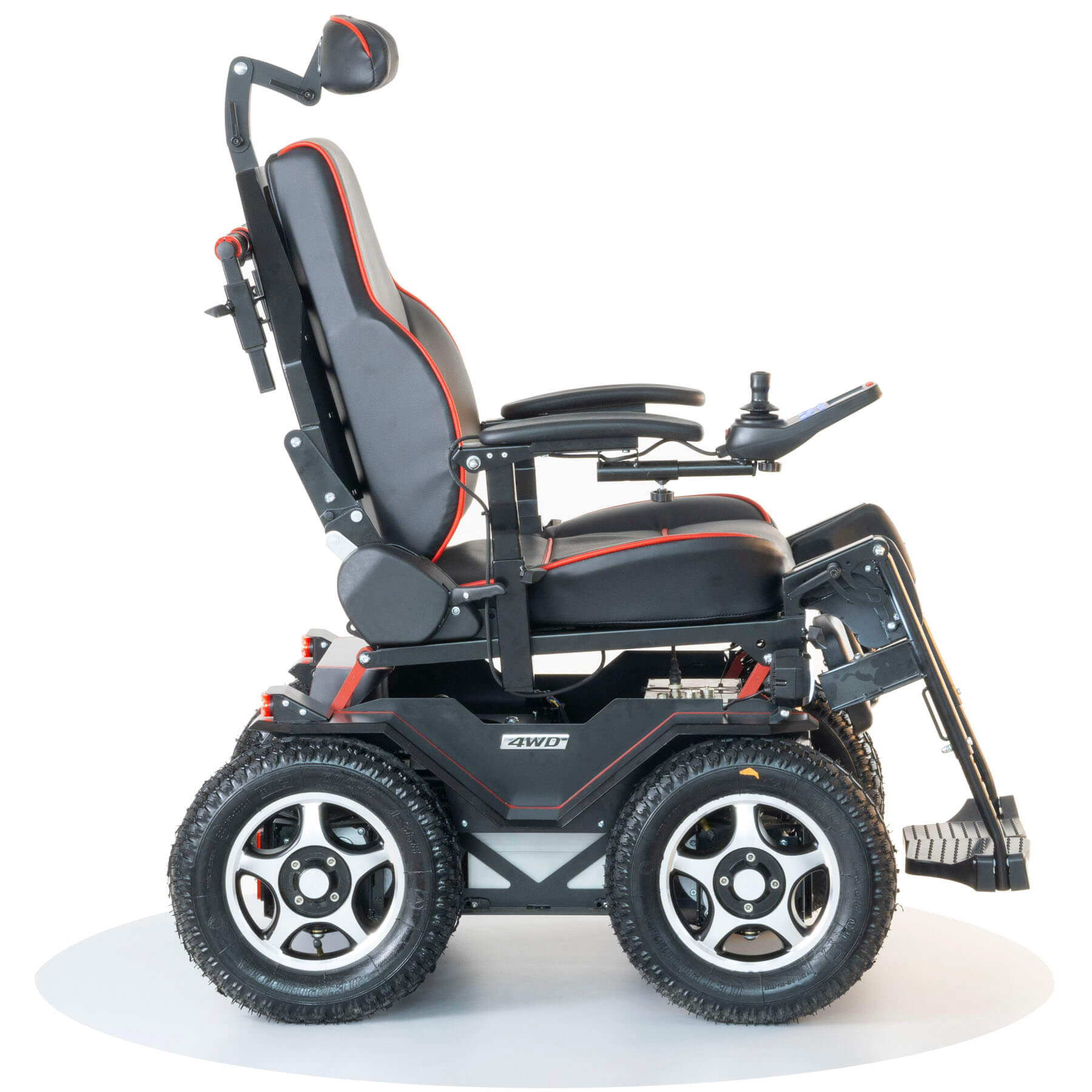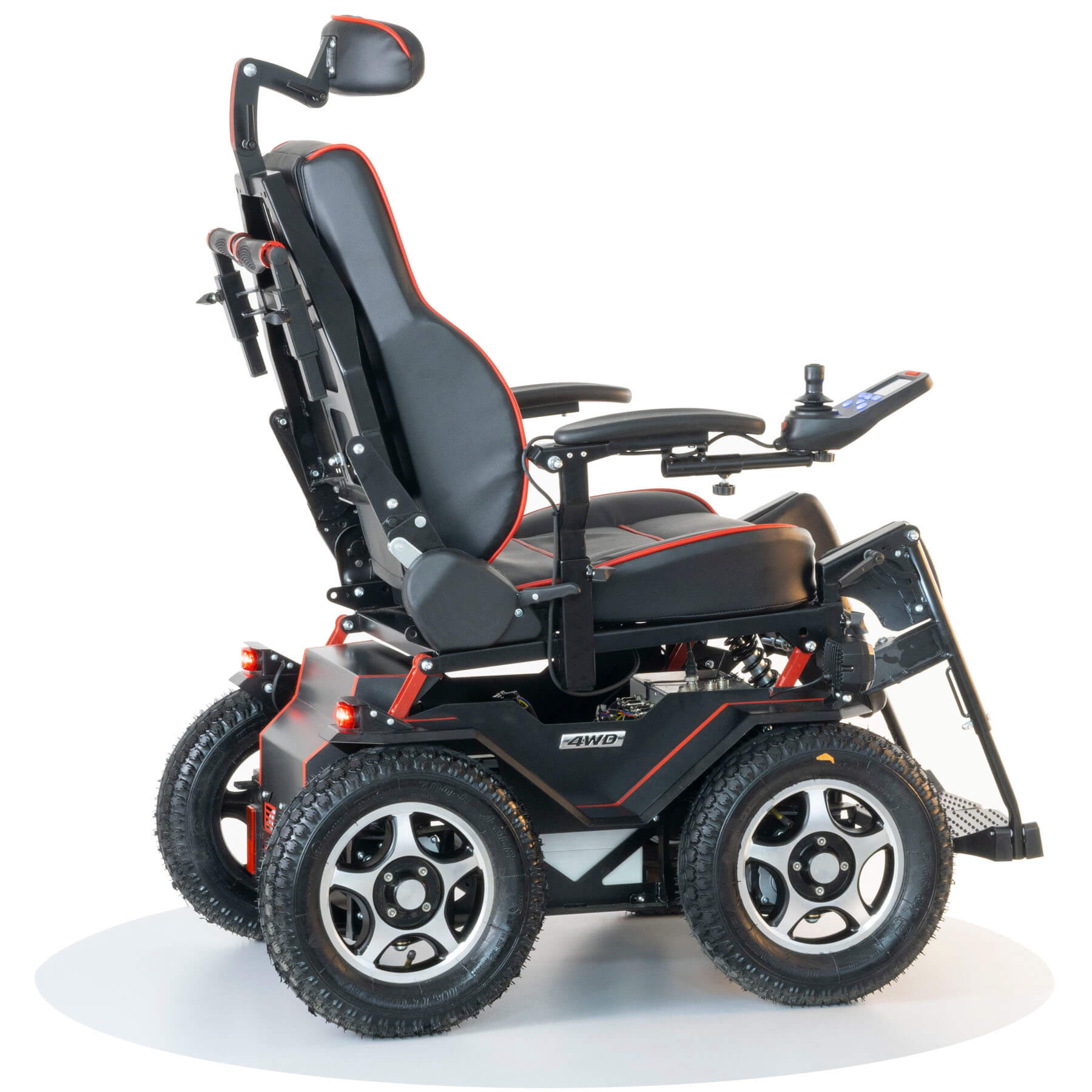 Der Elektrorollstuhl FER-Ultra 4WD ist die Version des FER-1300 ohne Treppensteigefunktion. Der Elektrorollstuhl FER-Ultra 4WD verfügt über 4 Antriebsräder. Allradantrieb ermöglicht das Wenden vor Ort auf engstem Raum. Der allradgetriebene Elektrorollstuhl hat eine extrem hohe Geländetauglichkeit und Manövrierfähigkeit. Die Vorteile dieses Modells lassen sich auch auf seine kompakten Abmessungen zurückführen. Das Fahrzeug ist 65 cm breit und nur 86 cm lang ohne Fußstützen und 105 cm mit Fußstützen. Das Gewicht des Geländefahrzeugs beträgt nur 98 kg!