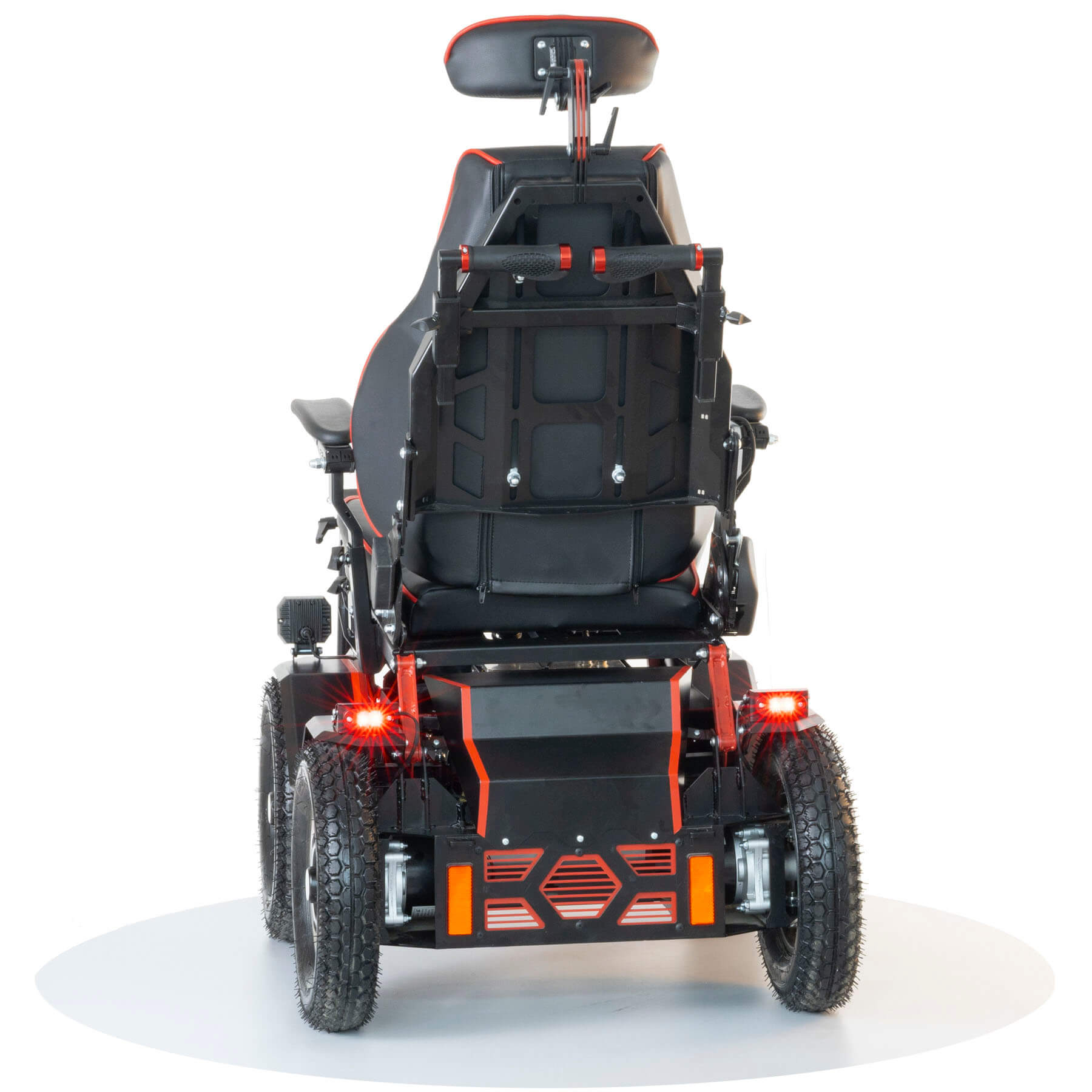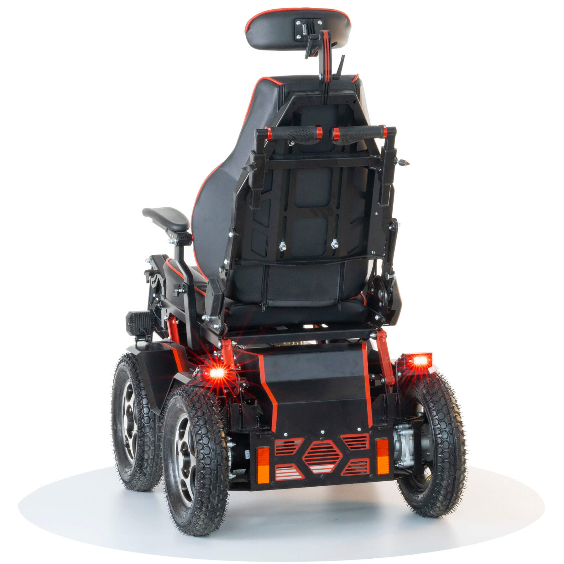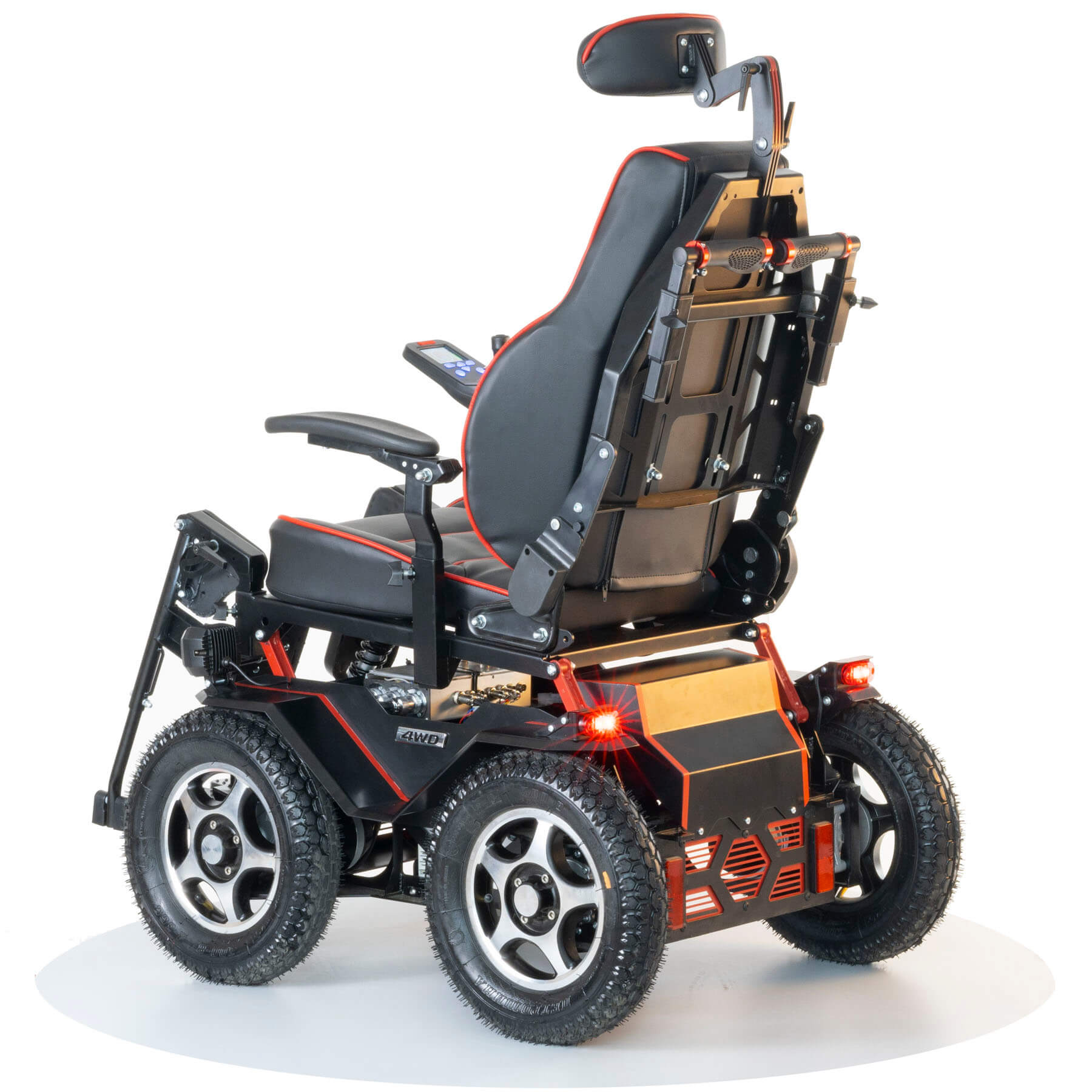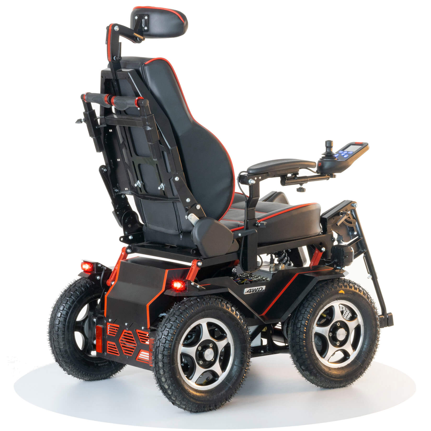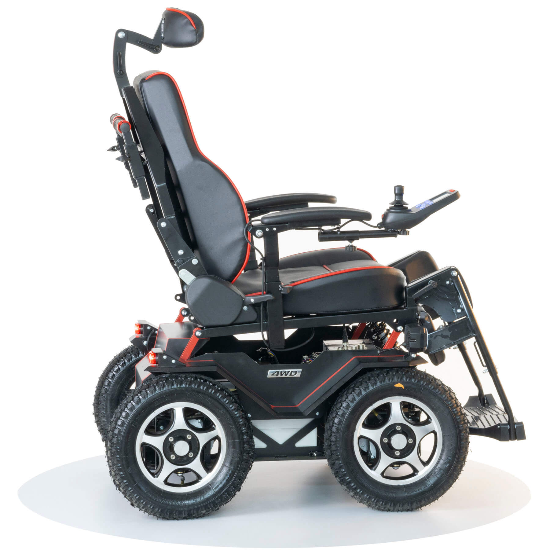 Der Elektrorollstuhl FER-Ultra 4WD ist die Version des FER-1300 ohne Treppensteigefunktion. Der Elektrorollstuhl FER-Ultra 4WD verfügt über 4 Antriebsräder. Allradantrieb ermöglicht das Wenden vor Ort auf engstem Raum. Der allradgetriebene Elektrorollstuhl hat eine extrem hohe Geländetauglichkeit und Manövrierfähigkeit. Die Vorteile dieses Modells lassen sich auch auf seine kompakten Abmessungen zurückführen. Das Fahrzeug ist 65 cm breit und nur 86 cm lang ohne Fußstützen und 105 cm mit Fußstützen. Das Gewicht des Geländefahrzeugs beträgt nur 98 kg!
