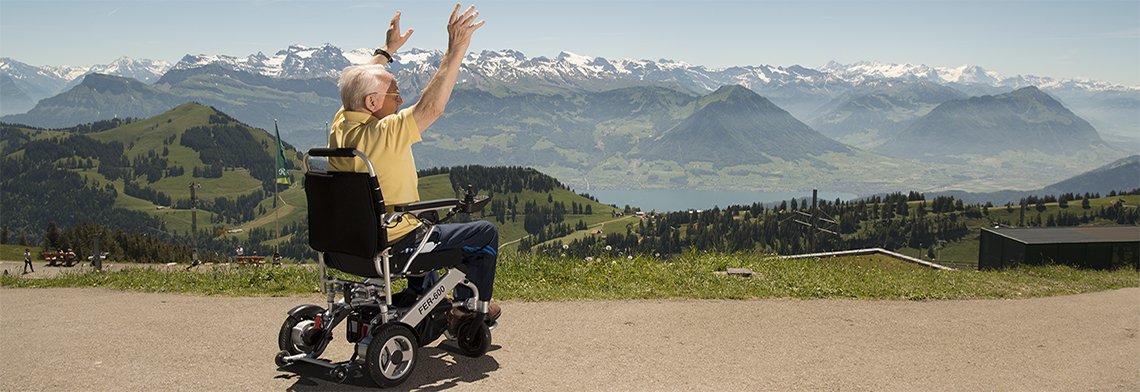 Mit dem Elektrorollstuhl FER-600 können Sie wieder mit der Bahn, dem Schiff oder sogar mit dem Flugzeug verreisen – ganz ohne Stress. Da die Räder keine Luft enthalten, müssen sie diese nach dem Flug nicht zuerst wieder aufpumpen, sondern können die Reise direkt fortsetzen. Der zusammenfaltbare Elektrorollstuhl FER-600 und seine Batterien haben Zertifikate, welche alle Fluggesellschaften akzeptieren (der FER-600 und FER-1050 werden sogar empfohlen von den Airlines Swiss und Edelweiss).