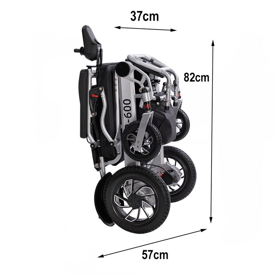 Dieser Elektrorollstuhl FER-600, kann in weniger als 3 Sekunden gefalter werden und passt so in das kleinste Fahrzeug.